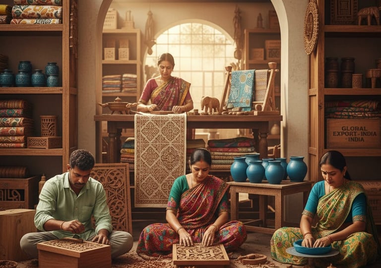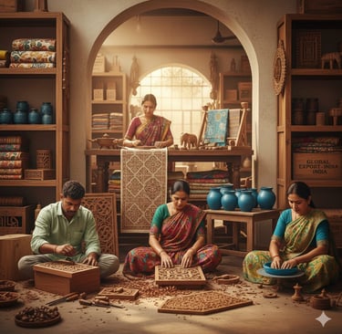 To take authentic Indian handicrafts to the world—responsibly, sustainably, and proudly—while preserving traditional craftsmanship and empowering artisan communities.
